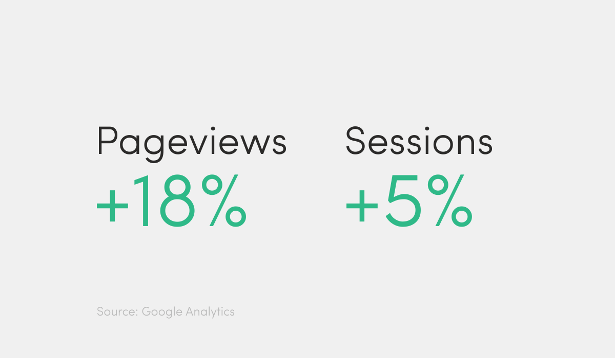 Over a period of six months, pageviews went up 18%, while the number of sessions grew with nearly 5% compared to the six months prior to the launch of the new website.